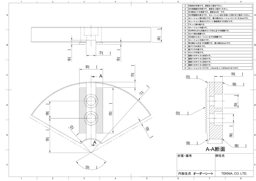 ㉑セレーションピッチです。1.5㎜もしくは3㎜になります。 1.5㎜3㎜